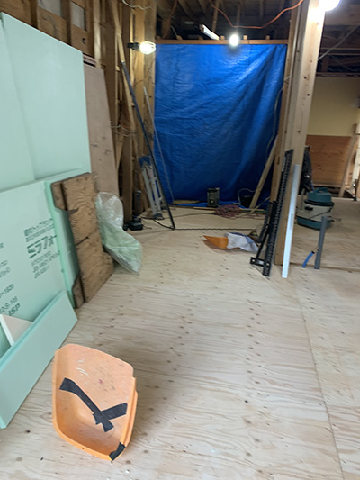 リフォーム工事に伴い間取り変更があります。そのため、間仕切り部分には新たに基礎を作る必要があります。また、コンクリートを打つ場所などは湿気が上がってこないようにシートを張ってからコンクリートを打ちます🔨