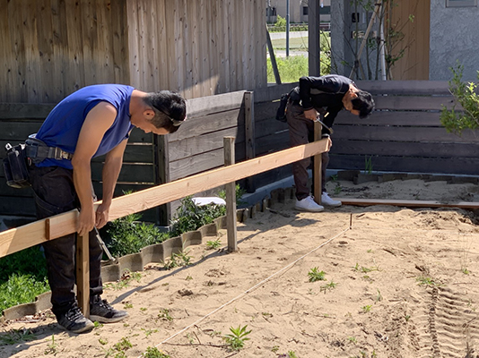 この作業は、建物の水平や位置などを決める最も基礎となる作業となるため慎重に確認をしながら作業を行います💦