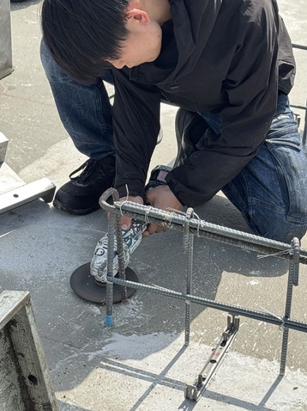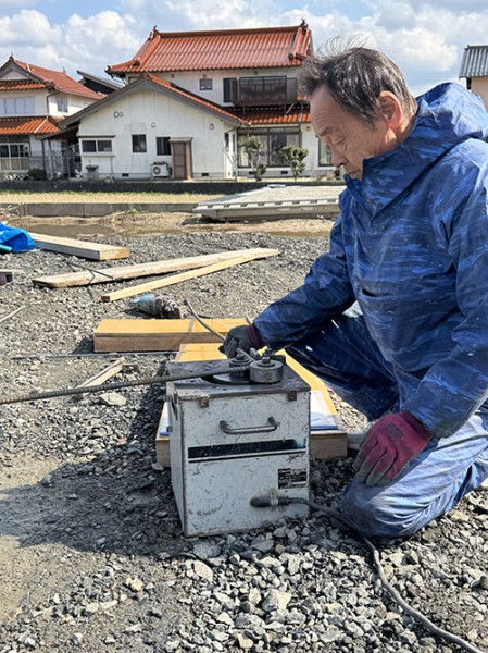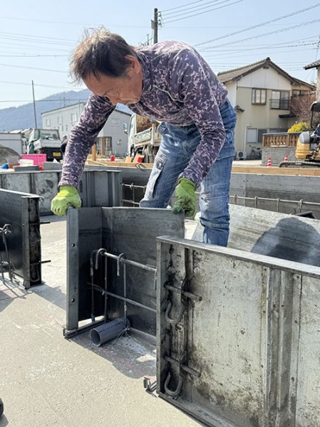 鉄筋を加工して配筋し型枠を組みました。コンクリートを打設して基礎工事を進めていきます。
